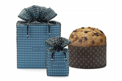 新穎的包裝令這些美味甜點成為饋贈佳品:帶有藍綠色波點印花的黑色薄紗和經典的Armani