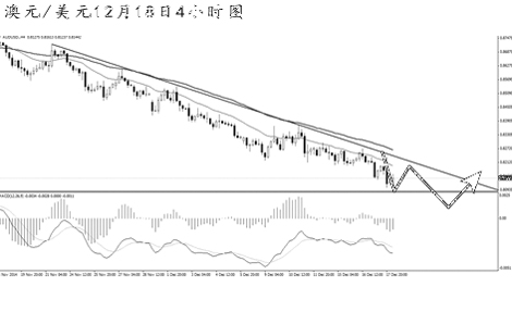 澳元兌美元短線持續(xù)創(chuàng)出新低。從日線圖上看,匯價(jià)一路下行,中途幾乎沒有任何明顯的調(diào)整。大級(jí)別下方支撐在0.8065,預(yù)計(jì)澳元將直接向此位置發(fā)起挑戰(zhàn)。4小時(shí)圖主客觀趨勢(shì)均為下跌,MACD持續(xù)發(fā)生角度明顯的底背離信號(hào),但在升破趨勢(shì)線之前,預(yù)計(jì)效果一般。短線匯價(jià)面臨回調(diào),操作仍需以做空為主。