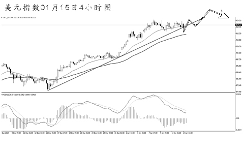 由于連續(xù)幾個(gè)月對(duì)金融市場(chǎng)造成“劇烈震動(dòng)”,美國零售銷售數(shù)據(jù)已經(jīng)成為繼非農(nóng)數(shù)據(jù)后又一個(gè)“恐怖數(shù)據(jù)”。本周公布的美國零售銷售數(shù)據(jù)意外大幅下滑推動(dòng)美債收益率大跌,導(dǎo)致美元指數(shù)短線急挫,同時(shí)也令油價(jià)收獲逾兩年來的最大單日漲幅。美國商務(wù)部周中公布的數(shù)據(jù)顯示,美國2014年12月零售銷售月率大幅下滑0.9%,遠(yuǎn)低于市場(chǎng)預(yù)期的下降0.1%,較上月的增長(zhǎng)0.7%更是相距甚遠(yuǎn)。美國零售銷售遭受重挫主要與汽油價(jià)格的明顯下降有關(guān),但在12月這個(gè)零售業(yè)通常最為繁忙的月份,多數(shù)零售店的銷售卻出乎意料的疲軟。由于該數(shù)據(jù)令人失望,市場(chǎng)進(jìn)一步推后美聯(lián)儲(chǔ)首次加息的預(yù)期時(shí)間,此前很多分析認(rèn)為美聯(lián)儲(chǔ)會(huì)在6月加息。我們認(rèn)為,此次公布的零售銷售數(shù)據(jù)可能因?yàn)榧竟?jié)性因素而失真,并沒有真實(shí)反映美國零售銷售的情況,不過,市場(chǎng)可能還是需要數(shù)據(jù)有明顯改善,才能恢復(fù)對(duì)美聯(lián)儲(chǔ)預(yù)期的信心。目前我們預(yù)計(jì)美聯(lián)儲(chǔ)今年仍然會(huì)加息,但具體時(shí)間可能會(huì)推后。此前,美國聯(lián)邦基金利率期貨走勢(shì)顯示市場(chǎng)預(yù)計(jì)美聯(lián)儲(chǔ)在6月或7月加息,但許多投資者目前相信美聯(lián)儲(chǔ)加息可能要等到三季度或四季度。由于2014年12月美國零售銷售數(shù)據(jù)創(chuàng)出11個(gè)月來的最大降幅,投資者對(duì)美元多倉進(jìn)行部分獲利了結(jié),美元指數(shù)在數(shù)據(jù)出爐后一度觸及91.57。不過,由于各界紛紛揣測(cè)歐洲央行或?qū)⑼瞥鲆豁?xiàng)大規(guī)模主權(quán)債券購置計(jì)劃,因此在歐洲央行1月22日政策會(huì)議之前,美元指數(shù)不太可能大幅下跌。美元指數(shù)小幅刺破了上升趨勢(shì)線,但整體的漲勢(shì)沒有改變。從大級(jí)別圖形上看,美元指數(shù)站穩(wěn)在89.60上方,后市有望繼續(xù)挑戰(zhàn)92.65一線的阻力。4小時(shí)圖均線系統(tǒng)依托效果完好,價(jià)格橫向運(yùn)行,整體屬于前方上漲的次要節(jié)奏調(diào)整。短線此前MACD的頂背離信號(hào)發(fā)揮了一定的效果,若美元指數(shù)可以繼續(xù)創(chuàng)出新高,則仍需選擇弱勢(shì)非美貨幣以做空為主。