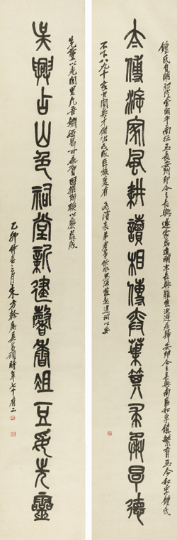 吳昌碩 花香四時(shí) 紙本立軸 1917年作 出 版: 《日本藏吳昌碩金石書畫精選》P134-135,西泠印社出版社,2004年。 備注:王震題盒。 133×33 cm×4 約4.0平尺(每幅) |