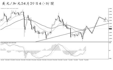 美元兌加元跌破了上升趨勢線之后再度發(fā)力上攻。日線圖,均線系統(tǒng)保持依托狀態(tài),道氏低點(diǎn)在1.2350,美加只有站在此位置下方才能結(jié)束中線的漲勢。4小時(shí)圖,匯價(jià)反復(fù)穿越均線系統(tǒng),在趨勢線下方震蕩整理。經(jīng)過連續(xù)幾根陽線的上攻,短線美加重獲上漲勢頭。但在價(jià)格觸及1.2600之前,暫不考慮激進(jìn)做多。