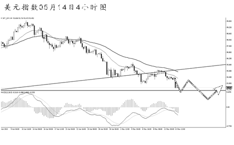 美元指數(shù)未能重新升破上升趨勢線的阻力,短線繼續(xù)下行回落。從日線圖上看,下方道氏低點支撐在93.20,美元指數(shù)即將向此位置發(fā)起沖擊。MACD顯示空頭動能仍然強勁。從4小時圖上看,美元指數(shù)主趨勢向下,均線系統(tǒng)保持完好的壓制排列。短線的下跌力度較強,目前面臨一定的上調(diào)壓力,但后市延續(xù)跌勢的概率較大。
