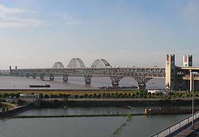 交通部長江航道局航道行政管理處處長薛俊說,長江干流上影響航運最典型、最突出的就是南京長江大橋。20世紀60年代建造的南京長江大橋,凈空高度僅有24米,如同一座鐵鎖,把大船擋在橋下,豐水期僅能通過3000噸級船舶,萬噸級外輪根本不可能通過。后來新建的蕪湖、銅陵、安慶等長江大橋的凈高,也“將錯就錯”地比照南京長江大橋的凈空高度建設,致使南京至銅陵213公里可供萬噸級海輪通航的深水航道未得到充分利用。