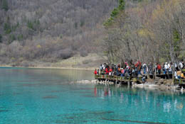 被譽為“童話世界”、“人間仙境”的九寨溝在眾多導(dǎo)演看來,也是拍攝影視劇的天堂。(本報資料照片) | 2006年,以電影《無極》為代表的影視拍攝給風景名勝帶來的破壞,引發(fā)了媒體和影視制作企業(yè)聯(lián)手發(fā)出“綠色影視”的倡導(dǎo)。 2007年3月初,《2006年:中國環(huán)境的轉(zhuǎn)型與博弈》環(huán)境綠皮書的發(fā)表,將中國影視劇拍攝和風景區(qū)環(huán)境保護再次推到了公眾的面前。 今年4月底,廣電總局下發(fā)通知,規(guī)定在自然保護區(qū)核心區(qū)和緩沖區(qū)、風景名勝區(qū)核心景區(qū)內(nèi),禁止進行拍攝活動;在自然保護區(qū)實驗區(qū)、風景名勝區(qū)核心景區(qū)以外范圍、各級文物保護單位保護范圍內(nèi),嚴格限制影視劇拍攝活動。 在影視拍攝破壞風景名勝的事件頻頻被曝光之后,中國終于掀起了“綠色影視”風暴。