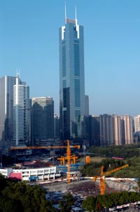 位于廣州市天河區(qū)商業(yè)旺地的工地正在施工。 本報記者:壯錦