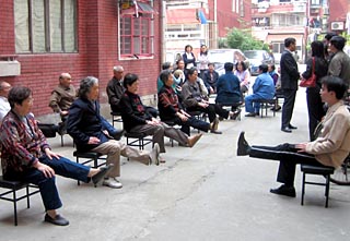 | 上海用“健康經(jīng)濟(jì)學(xué)”破解看病貴、看病難問題。圖為上海市靜安區(qū)南京西路街道的老人們?cè)诰毩?xí)“平衡訓(xùn)練操”。新華社發(fā) |