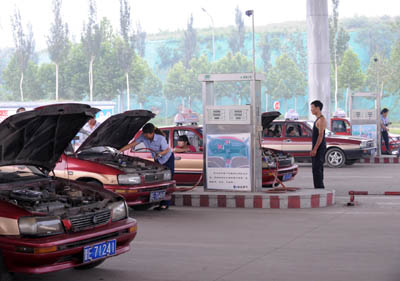 山西省的晉城、太原等地不少汽車“改油換氣”。昔日的“礦井殺手”——煤層氣(瓦斯),變成了汽車的燃料新寵。本報(bào)記者:燕雁