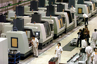沈陽機(jī)床集團(tuán)數(shù)控機(jī)床生產(chǎn)車間。新華社發(fā) | 當(dāng)全球性金融危機(jī)給不少實(shí)體經(jīng)濟(jì)帶來負(fù)面效應(yīng)時,我國裝備制造業(yè)基地之一沈陽仍呈現(xiàn)一片繁忙景象:北方重工的工人們忙著組裝地鐵用大型盾構(gòu)機(jī)出廠;特變電工沈變集團(tuán)夜以繼日地履行訂單合同;沈陽機(jī)床集團(tuán)爭分奪秒,將一臺臺中、高檔數(shù)控機(jī)床產(chǎn)品,運(yùn)往我國重點(diǎn)行業(yè)核心制造領(lǐng)域…… 沈陽裝備制造業(yè)龍頭企業(yè)去年四季度開始抓訂單、簽合同、回收貨款,飽滿的訂單為今年取得裝備業(yè)首季“開門紅”打下了堅(jiān)實(shí)的基礎(chǔ)。