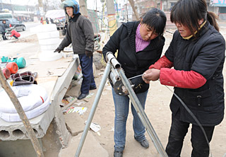 | 2月3日,河南省長葛縣董村鄉(xiāng)一家農(nóng)具商店生意興隆。隨著旱情的加重,越來越多的農(nóng)民到集市上選購澆水灌溉工具,投入抗旱保苗。新華社記者