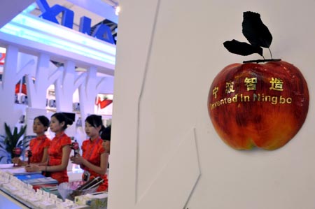 參加第105屆廣交會的中國企業(yè)著重在廣交會打造品牌價值,以提升企業(yè)品牌在海外的美譽(yù)度。圖為幾位工作人員在裝飾有“寧波智造”的展位前工作。本報記者:壯錦