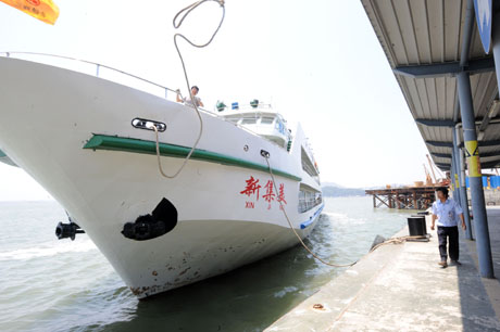 海峽論壇于5月15日至22日在福建廈門、福州、泉州、莆田等地舉行,參加論壇系列活動(dòng)的臺(tái)灣各界、各縣市的8000多位鄉(xiāng)親陸續(xù)抵達(dá)。圖為從金門駛來(lái)的新集美號(hào)抵達(dá)廈門。新華社記者