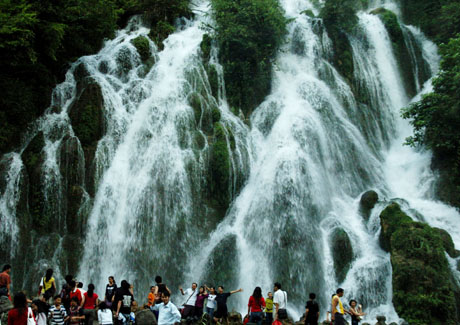 荔波遺產(chǎn)地內(nèi)的小七孔景區(qū)內(nèi)的拉雅瀑布。 新華社記者:楊俊江
