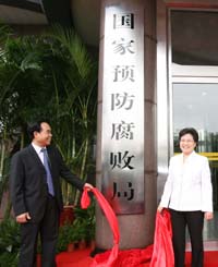 9月13日上午,國家預(yù)防腐敗局揭牌儀式在監(jiān)察部舉行。這是國家預(yù)防腐敗局局長馬馬文(右)和國家預(yù)防腐敗局副局長屈萬祥在揭牌儀式上。新華社記者:李濤 攝