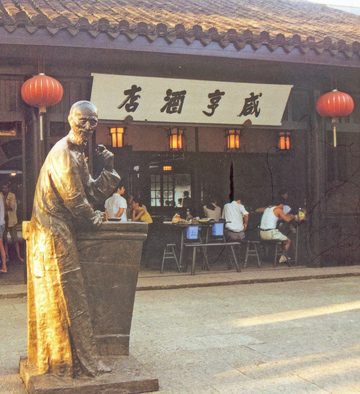 魯迅活著時(shí),為了寫(xiě)作,長(zhǎng)年累月地咳嗽、咳痰、咳血;魯迅長(zhǎng)年沒(méi)有固定的月薪收入及“灰色收入”,只是個(gè)自由撰稿人,靠一個(gè)字一個(gè)字地在燈下爬格子換取收入。 魯迅死后,魯迅的姓名、肖像甚至連其筆下的人物、地名都成了財(cái)富。咸亨酒店、魯鎮(zhèn)茶座、百草園飯店、阿Q酒家,在紹興市比比皆是。冠以三味、百草園、祥林嫂、孔乙己、阿Q、華老栓的商店及商品充斥紹興,像孔乙己茴香豆、魯鎮(zhèn)牌醬鴨、七斤嫂烏干菜等還注冊(cè)了商標(biāo)。 有商業(yè)眼光的人士敏銳地意識(shí)到魯迅小說(shuō)《孔乙己》中“咸亨酒店”這4個(gè)字的含金量,便依照小說(shuō)中描寫(xiě)的格局在魯迅路上修建了咸亨酒店,在酒店門(mén)口放置了孔乙己塑像。游覽紹興的國(guó)內(nèi)外游客慕名而來(lái),“咸亨”成了中國(guó)馳名商標(biāo),財(cái)源滾滾。 據(jù)紹興市工商局統(tǒng)計(jì),該市以魯迅作品中的人名、地名作企業(yè)名稱或商標(biāo)的已達(dá)300多件。