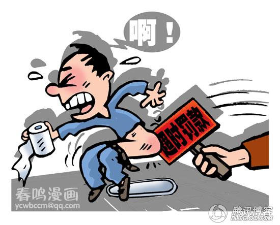 東莞某港資企業(yè)近日貼出一紙通知,18名員工受到罰款、記過等不同處罰。不為別的,只因如廁超時(shí)。原來,該公司數(shù)月前規(guī)定員工每月上廁所不得超過400分鐘,否則超時(shí)一分鐘扣一塊錢。為此,公司在男女廁所門前,設(shè)置廁所所長(zhǎng)把守。員工如廁前,得先打卡,電腦自動(dòng)記錄時(shí)間。據(jù)企業(yè)負(fù)責(zé)人稱,制定如廁令純屬無奈,是為防年輕人躲到廁所玩手機(jī)。(據(jù)《南方都市報(bào)》)