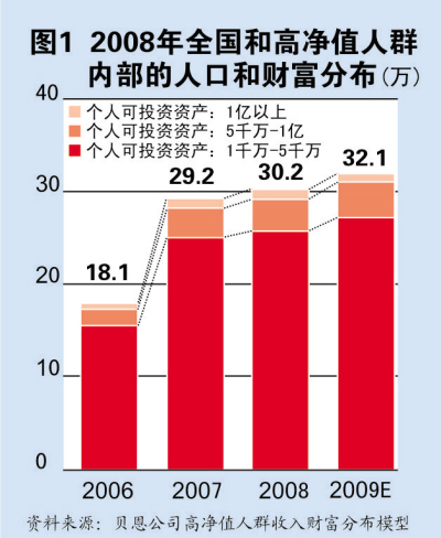 從市場需求來看,隨著高收入群體不斷擴(kuò)大,熱心于公益事業(yè)的群體逐步形成。改革開放以來,我國的國民經(jīng)濟(jì)取得了舉世矚目的巨大成就。與此同時(shí),財(cái)富結(jié)構(gòu)也發(fā)生了巨大變化,個(gè)人擁有的財(cái)富總量不斷增加。據(jù)統(tǒng)計(jì),2008年,中國可投資資產(chǎn)在1000萬元以上的高凈值人群已達(dá)30余萬人,人均持有可投資資產(chǎn)約2900萬元,共計(jì)持有可投資資產(chǎn)高達(dá)8.8萬億元之巨。(見圖1)