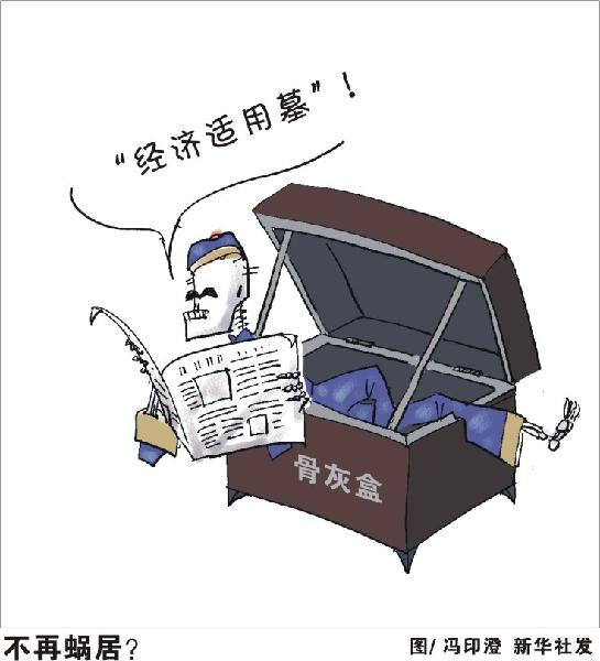近年來(lái),全國(guó)各地不斷曝出“天價(jià)墓”“豪華墓”,一些墓地動(dòng)輒幾十萬(wàn)元,有的甚至上百萬(wàn)元,比不斷上漲的房?jī)r(jià)還高,被輿論批為“黃泉路上收費(fèi)高”。最近,浙江省寧波市北侖區(qū)推出的“經(jīng)濟(jì)適用墓”,再次掀起有關(guān)殯葬改革的輿論交鋒:墓價(jià)高于房?jī)r(jià),“經(jīng)濟(jì)適用墓”能否破解“黃泉路上收費(fèi)高”的尷尬,減輕群眾的殯葬負(fù)擔(dān)?這種改革是否適合我國(guó)人多地少的國(guó)情,符合殯葬改革的方向?相關(guān)人士認(rèn)為,傳統(tǒng)觀念在短期內(nèi)很難改變,應(yīng)當(dāng)正視群眾“入土為安”的殯葬需求,允許作為權(quán)宜之計(jì)的“經(jīng)濟(jì)適用墓”嘗試和探索。但更為長(zhǎng)遠(yuǎn)的,應(yīng)當(dāng)理順殯葬管理體制,加快殯葬管理立法進(jìn)度,積極推行政事分開、管辦分離,通過(guò)政府限價(jià)等干預(yù)措施,讓墓價(jià)整體“經(jīng)濟(jì)適用”。新華社發(fā)