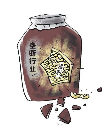 對外號稱長期虧損、困難重重,對內(nèi)卻發(fā)著天價獎金,享受著高額福利……群眾詬病已久的壟斷行業(yè)過高福利問題,在今年全國兩會召開之際再次引發(fā)密集關(guān)注。一些代表委員直言:依靠國家壟斷資源賺取的過高福利,不利于社會公平。社會日益走向公正合理,要求抓緊破除壟斷行業(yè)過高的福利。一方面要加強監(jiān)管,將壟斷國企中不合理的福利待遇逐一梳理清除,另一方面,要盡快改變當(dāng)前部分壟斷行業(yè)的管理體制、市場機制,讓市場邁向開放,讓企業(yè)運營走向透明。新華社發(fā)