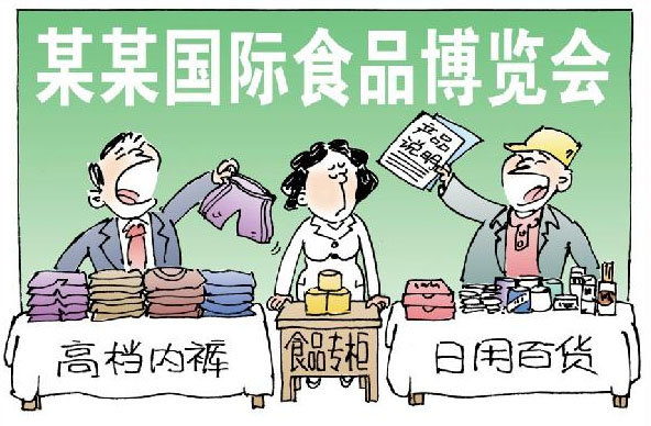 。保踩臻_幕的大連國際食品博覽會亂象叢生,令人質(zhì)疑。記者當(dāng)天上午在由大連市相關(guān)部門主辦、大連超越國際展覽有限公司承辦的大連國際食品博覽會上看到,會場內(nèi)除了食品外,有商販在銷售內(nèi)褲、家具、眼鏡、珍珠、玉器、工藝品,甚至賣起汽車洗車器、拖地用的拖把等。有的觀眾說,這些商品與食品八竿子打不著,怎么會擺到了食品博覽會上。也有的觀眾說,這個食品博覽會就像個雜亂的自由市場。新華社發(fā)