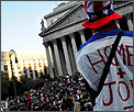 | 【占領華爾街:美國之秋而非美國之春】瑟瑟秋風中我在波士頓杜威廣場近距離感受這場群眾運動。同情者眾多,抗議的信息非常噪雜。但是看不到任何具體的政治要求。阿拉伯之春帶來的是政治新風,占領華爾街僅僅是瑟瑟的寒意,用美國之秋來形容再恰當不過。當然,未來幾個星期,很可能會有朝野政治人物出來借勢。 |