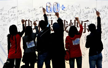 圖為3月31日,江西九江的市民在“地球一小時(shí)”活動(dòng)展板上簽名。新華社發(fā)(胡國(guó)林/攝) |