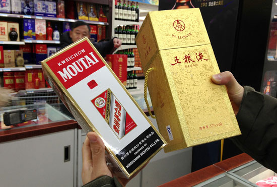 茅臺和五糧液公司因價格壟斷被罰4.49億元,創(chuàng)我國反壟斷史上最大罰單。發(fā)展改革委價格監(jiān)督檢查與反壟斷局副局長張光遠透露,到3月11日前兩公司已全額繳納罰款,相關案件已結案。 圖為商店銷售的茅臺酒與五糧液酒。記者