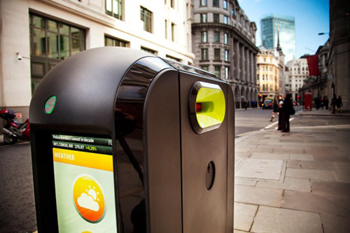 圖為倫敦奧運會期間,英國一家科技公司在倫敦街頭安放的智能垃圾箱! 資料照片 |