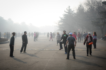 實(shí)施好新的《環(huán)境保護(hù)法》,可以給我們的生活帶來一縷吹散霧霾的清風(fēng)。圖為長(zhǎng)春市民在春天的霧霾中踢毽子。記者