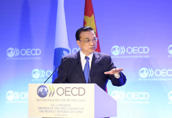 當(dāng)?shù)貢r(shí)間7月1日上午,中國國務(wù)院總理李克強(qiáng)應(yīng)邀在巴黎經(jīng)濟(jì)合作與發(fā)展組織總部發(fā)表主旨演講。新華社記者 丁林 攝 |