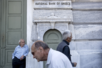 當(dāng)?shù)貢r(shí)間6月29日,每個(gè)月底都是希臘老人領(lǐng)取退休金的日子。而如今,緊閉的銀行大門前,拄著拐杖的老人只能對(duì)著卷簾門望洋興嘆。在希臘首都雅典和北部城市塞薩洛尼基,記者目睹白發(fā)蒼蒼的長者在一家家銀行外排隊(duì)坐等,希望能取到他們的養(yǎng)老金。 |