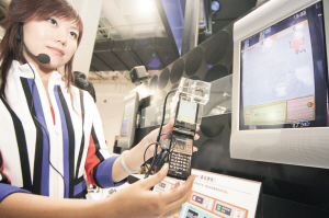 | 在第16屆中國國際通信設備技術展覽會上,模特展示夏普WCDMA手機