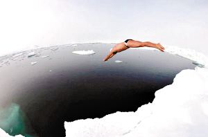 為了宣傳全球變暖的影響,素有“北極熊”之稱(chēng)的英國(guó)探險(xiǎn)家劉易斯·戈頓·皮尤15日挑戰(zhàn)“在最冷水中游泳”的人體極限紀(jì)錄,暢游了1公里并成為在北極游泳的第一人,而他全身所有的配備只有泳裝、泳帽和護(hù)目鏡。 北極裸泳1公里 7月15日,劉易斯·戈頓·皮尤只穿一條游泳褲、戴著一頂泳帽和一個(gè)護(hù)目鏡,在北極零下1.8攝氏度的刺骨冰水中暢游了19分鐘。據(jù)悉,零下1.8攝氏度的北極水溫是人類(lèi)游泳史上遇到過(guò)的最寒冷的水溫。皮尤總共在冰水里前進(jìn)了1公里的距離。 雖然北極的水溫在0攝氏度以下,但較高的鹽含量使這里的水還沒(méi)凍結(jié)起來(lái)。 在游泳結(jié)束離開(kāi)冰水之后,皮尤的體溫降到了36.5攝氏度,20分鐘之后甚至降到了35攝氏度。但在洗了一次暖水澡之后,他的體溫很快就恢復(fù)了正常。 據(jù)報(bào)道,現(xiàn)年37歲的皮尤被人稱(chēng)作是“北極熊”,因?yàn)樗鞘澜缟衔ㄒ灰粋(gè)在五大洋中進(jìn)行過(guò)長(zhǎng)距離游泳的人。 據(jù)悉,他之所以要到北極進(jìn)行破紀(jì)錄游泳挑戰(zhàn),是為了宣傳全球變暖對(duì)環(huán)境的影響,從而引起世人對(duì)氣候問(wèn)題的關(guān)注。