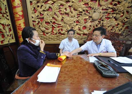 王琦(右一)在給患者看病。本報(bào)記者李文攝 | 十年前,只要有時(shí)間,王琦都要去馬路上盯著行人看。來(lái)來(lái)往往的人群在他面前一閃而過(guò),王琦就在心里琢磨他常生什么病,今后可能會(huì)生什么病。如今,他研究的中醫(yī)體質(zhì)學(xué)不僅得到了國(guó)家的認(rèn)可,還為世界衛(wèi)生組織提出的今后醫(yī)學(xué)發(fā)展方向———“個(gè)性化”診療———提供了思路。