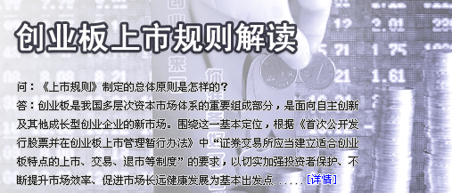 | ·2000年5月,國務院討論中國證監(jiān)會關于設立二板的請示,原則同意中國證監(jiān)會意見,將二板市場定名為創(chuàng)業(yè)板市場。 |