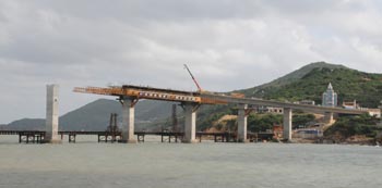 上圖:正在鋪設(shè)橋面的平潭海峽大橋。