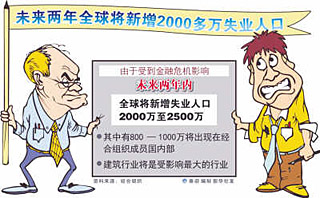 國際勞工組織日前發(fā)出警告,到2009年底,金融危機(jī)可能使世界失業(yè)人口從2007年的1.9億上升到2.1億。這將是10年來全球失業(yè)人數(shù)首次突破兩億大關(guān)。 該組織稱,本次金融風(fēng)暴中,金融業(yè)將率先掀起裁員潮,處于漩渦中心的美國首當(dāng)其沖,12月5日,美國勞工部公布的數(shù)據(jù)顯示,2008年11月份失業(yè)率上升到6.7%,為15年來的最高點(diǎn)。2007年以來,華爾街已丟失12萬個(gè)工作崗位,至2009年底還將進(jìn)一步裁員24萬人。實(shí)體經(jīng)濟(jì)方面,受波及最嚴(yán)重的則是制造業(yè)和服務(wù)業(yè)。金融危機(jī)所導(dǎo)致的廣告支出急劇下滑,也使得印刷媒體業(yè)面臨嚴(yán)峻的挑戰(zhàn)。 美國著名職業(yè)咨詢公司近日發(fā)布的研究數(shù)據(jù)顯示,受金融海嘯的影響,到2008年年底,全球IT產(chǎn)業(yè)將有18萬人失業(yè),這些被裁員工來自雅虎、惠普、北電等多家知名IT企業(yè)。這也是自2003年以來IT產(chǎn)業(yè)裁員人數(shù)最多的一年。咨詢機(jī)構(gòu)韜睿上月就“危機(jī)中的薪酬”展開了全球調(diào)查,結(jié)果顯示,四成亞洲企業(yè)擬減年終獎(jiǎng),5%的企業(yè)考慮大量裁員。