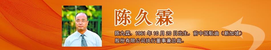 | 人物背景 | 陳九霖,1961年10月20日出生,前中國航油(新加坡)股份有限公司執(zhí)行董事兼總裁。在他執(zhí)掌期間,中國航油凈資產(chǎn)由17.6萬美元增至1.5億美元,增幅852倍,市值超過11億美元,是原始投資的5022倍,締造了一個商業(yè)傳奇,因此被稱為“航油大王”。2004年,中國航油因澳大利亞籍交易員紀(jì)瑞德和英國籍交易員卡爾瑪從事油品期權(quán)交易導(dǎo)致巨額虧損。陳久霖本人因此被迫離職,并遭到新加坡警方拘捕。2006年3月,新加坡初等法院做出判決,判處陳久霖入獄服刑四年零三個月,其判刑原因是股東售股拯救公司和公司沒有向交易所呈報虧損。陳久霖在新加坡服刑1035天后,于2009年1月20日刑滿出獄。