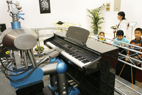 11月19日,在浙江省上虞市科技節(jié)“高新技術(shù)產(chǎn)品成果展”上,一臺機器人為觀眾表演鋼琴彈奏。該展覽以“新技術(shù)、新產(chǎn)品、新生活”為主題,展出1000余項高新技術(shù)產(chǎn)品,吸引了眾多參觀者。