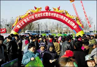 堅(jiān)持項(xiàng)目建設(shè)與提供就業(yè)服務(wù)同時(shí)進(jìn)行。勞動(dòng)保障部門在獲知建設(shè)項(xiàng)目用工需求后,對(duì)該項(xiàng)目進(jìn)行“跟追式”服務(wù),千方百計(jì)為企業(yè)提供所需人員。比如,在首都機(jī)場擴(kuò)建工程中,他們加強(qiáng)與首都機(jī)場的溝通和協(xié)調(diào),利用在機(jī)場內(nèi)成立的“順義區(qū)勞動(dòng)(人才)服務(wù)中心”的優(yōu)勢,一方面優(yōu)先安置被拆遷村勞動(dòng)力,另一方面積極推薦本區(qū)農(nóng)村勞動(dòng)力就業(yè),搶占就業(yè)崗位。