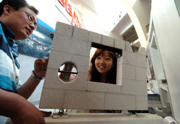 5月10日,第六屆中國(北京)國際綠色建材展覽會在北京展覽館開幕。以節(jié)約社會資源、保護(hù)環(huán)境為主旨的節(jié)能低耗的新型建材產(chǎn)品在展覽會上受到關(guān)注。圖為參觀者在展覽會上觀看北京金隅集團(tuán)的加氣混凝土系列產(chǎn)品。