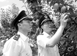寧波檢驗檢疫局工作人員在寧波市灣底村對出口農產(chǎn)品基地進行源頭管理 |