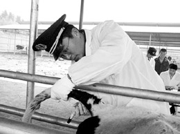 寧波檢驗檢疫局工作人員在抽取新西蘭進口奶牛的血樣 |
