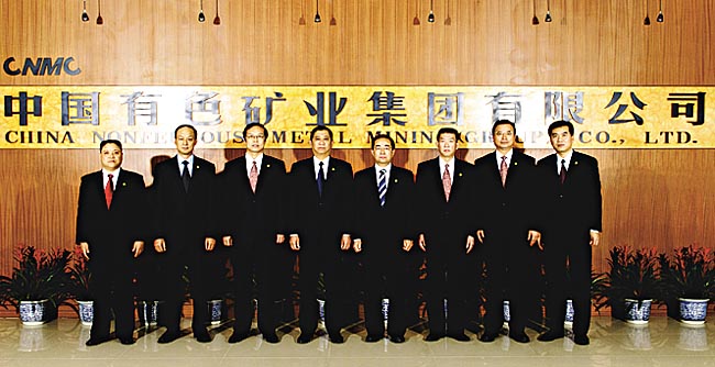中國有色集團領(lǐng)導(dǎo)班子成員。左起:副總經(jīng)理嚴(yán)弟勇,副總經(jīng)理孫加林,黨委副書記、紀(jì)委書記許樹森,總經(jīng)理、黨委副書記羅濤,黨委書記、副總經(jīng)理張克利,副總經(jīng)理江浩,副總經(jīng)理陶星虎,總會計師武翔 |
