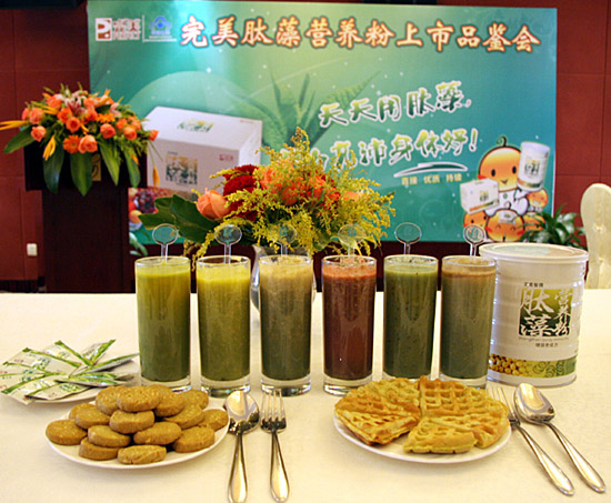 在隨后的上市品鑒會上,廚藝師傅現場烘制、調配了以肽藻營養(yǎng)粉為主要原料的餅干及飲料。于顯文高級經理在品鑒會上介紹說:肽藻營養(yǎng)粉作為一款新型高科技含量的保健食品,是始終依循完美公司的“清調補”理念來研發(fā)、組方的。肽藻營養(yǎng)粉精選來自植物(大豆肽、南瓜粉、薏苡仁粉等)、藻類(螺旋藻)、動物(乳清蛋白)中的天然營養(yǎng)物質為主要原料,富含維持人體正常生理功能所必需的蛋白質、低聚肽、多糖、維生素、礦物質等營養(yǎng)成分和生理活性成分,而五谷雜糧的配入,使配方更加科學合理、全面、均衡,更好地增強人體免疫能力,擺脫亞健康。肽藻營養(yǎng)粉同時也是一款生活化、個性化的食品,在生活中,消費者可以根據個人的喜好和需要,個性化地食用。