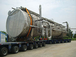 | 二三公司按照模塊化施工制作的大型設(shè)備。 | 中國的核電事業(yè)匯聚了共和國的幾代精英:雙鬢如霜的創(chuàng)業(yè)元老,縱馬南北的核工業(yè)建設(shè)中堅(jiān),壯志凌云的新一代英才。如今,隨著“十一五”規(guī)劃的發(fā)布與實(shí)施,我國全面步入核電發(fā)展新時(shí)期。半個(gè)世紀(jì)的奮斗終于向世界證明:起步于艱難時(shí)期的中國核工業(yè),已成功邁向一個(gè)新時(shí)代。這既是對(duì)20世紀(jì)的告別,也是中國核工業(yè)奮起追趕世界一流目標(biāo)的一種開始。風(fēng)雨同舟、前赴后繼、頑強(qiáng)拼搏、改革創(chuàng)新,在中國核工業(yè)的發(fā)展進(jìn)程中,中國核工業(yè)建設(shè)集團(tuán)公司下屬的中國核工業(yè)第二三建設(shè)公司(以下簡(jiǎn)稱“二三公司”)激情演繹了“創(chuàng)新發(fā)展、勇當(dāng)重任”的深刻內(nèi)涵,其間創(chuàng)業(yè)艱辛、奮斗曲折。無數(shù)為核電事業(yè)大發(fā)展付出青春和熱血的創(chuàng)業(yè)者,鑄就了中國核電核島自主建設(shè)安裝的輝煌,實(shí)現(xiàn)著產(chǎn)業(yè)報(bào)國的理想,贏得了國際同行的高度尊重。