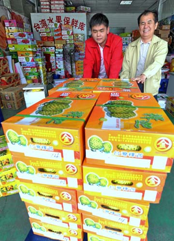 4月9日,在廈門中埔臺灣水果交易中心,經(jīng)營臺灣水果的臺南縣楠西鄉(xiāng)農(nóng)會營銷人員對剛運到的水果進行冷藏。 隨著兩岸“大三通”的基本實現(xiàn),臺灣水果在大陸的銷售量大大增加。據(jù)廈門檢驗檢疫局統(tǒng)計,2009年一季度廈門進口臺灣水果1690多噸,已超過2008年全年進口量。