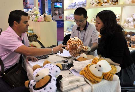 在105屆廣交會上,中國玩具出口企業(yè)在努力維持老客戶的同時,開始尋找新興市場,甚至開始尋找內(nèi)銷市場。不少企業(yè)今年開始開發(fā)適合國內(nèi)市場的產(chǎn)品,尋找新的業(yè)績增長點(diǎn)。4月26日,一位來自墨西哥的客商在廣交會的展館中洽談。
