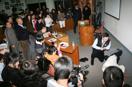 聽(tīng)講者在記錄之余,跟隨他做著有助于舒緩身心壓力的各種動(dòng)作。結(jié)束時(shí),大家都感覺(jué)時(shí)間太短,有好多同學(xué)希望做張教授簡(jiǎn)易健康系列著作的傳銷(xiāo)員:“一人最少發(fā)展六個(gè)下線(xiàn),十個(gè)算不多,二十個(gè)最好!