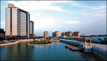 從北京天安門沿長安街驅(qū)車向東,即可到達(dá)潮白河畔。遠(yuǎn)遠(yuǎn)望去,緊鄰河畔的一座座高樓拔地而起,燕達(dá)國際健康城清晰可見。作為大型國際醫(yī)療健康產(chǎn)業(yè)項(xiàng)目,燕達(dá)國際健康城以“世界級(jí)的醫(yī)療服務(wù)、世界級(jí)的健康生活”為愿景,構(gòu)筑了一個(gè)涵蓋國際醫(yī)療、健康養(yǎng)護(hù)、健康管理、醫(yī)療科研、醫(yī)療教育、醫(yī)療國際交流等諸多領(lǐng)域的“大健康產(chǎn)業(yè)”。 歷時(shí)五年打造的燕達(dá)國際健康城將于2010年6月盛大揭幕。項(xiàng)目總投資100億元人民幣,占地面積50萬平方米(不含附屬用地),總建筑面積110萬平方米。燕達(dá)國際醫(yī)院擁有四座總計(jì)25萬平方米住院樓,一座7萬平方米的康復(fù)樓,一座5萬平方米的門診樓以及一座6萬平方米的醫(yī)技樓,總醫(yī)療面積43萬平方米。設(shè)置醫(yī)療床位2000張,康復(fù)床位1000張。國際健康養(yǎng)護(hù)中心總建筑面積60萬平方米,設(shè)置床位12000張。 燕達(dá)國際健康城由五大板塊構(gòu)成:國際醫(yī)院、金色年華健康養(yǎng)護(hù)中心、國際醫(yī)學(xué)研究院、國際醫(yī)護(hù)培訓(xùn)學(xué)院、國際會(huì)議中心。五大板塊相互獨(dú)立又互為補(bǔ)充和促進(jìn)。在自然景觀布局上,通過一條總面積近4萬余平方米的水系帶狀公園,將健康城自然地分隔為燕達(dá)國際醫(yī)院和金色年華健康養(yǎng)護(hù)中心兩大部分。健康城綠化率高達(dá)38%,園區(qū)內(nèi)各個(gè)景觀相互交融、相映生輝,形成了小橋流水、亭臺(tái)軒榭、花鳥樹木、游船雕塑,動(dòng)靜相宜的特色美景。