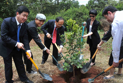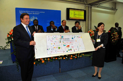 由聯(lián)合國環(huán)境規(guī)劃署和新華社非洲總分社共同主辦的“明月行動·走進非洲”大型環(huán)保公益活動29日在肯尼亞首都內羅畢正式開幕,本次活動旨在研討世界環(huán)境保護和可持續(xù)發(fā)展進程中面臨的諸多問題,與會人士還將資助聯(lián)合國立項幫扶的非洲學校及到肯尼亞貧困地區(qū)進行環(huán)保宣傳。 聯(lián)合國副秘書長、聯(lián)合國環(huán)境規(guī)劃署執(zhí)行主任阿希姆·施泰納在會上說,環(huán)境署很榮幸與中方,特別是中國媒體共同合作舉辦此次環(huán)保公益活動,以期使社會各界可以有機會共同交流環(huán)境保護及可持續(xù)發(fā)展的經驗。 施泰納表示,環(huán)境署感謝中國政府和企業(yè)多年來為幫助非洲開發(fā)資源、提高民眾生活水平方面做出的努力。中國總理溫家寶在去年召開的中非合作論壇第四屆部長級會議上再次把幫助非洲發(fā)展綠色經濟、實現(xiàn)可持續(xù)發(fā)展作為中非合作首要項目。非洲擁有巨大的資源開發(fā)潛力,環(huán)境署希望中國能夠幫助非洲實現(xiàn)互利互惠的資源開發(fā)模式,更好地利用當?shù)乜稍偕Y源。 肯尼亞副總統(tǒng)穆西約卡在會上說,肯尼亞與中國多年來一直保持著各領域良好的合作關系。他認為,肯尼亞是中國企業(yè)走進非洲綠色經濟的最好落腳點,自上世紀90年代,已經有很多中國企業(yè)為非洲及肯尼亞發(fā)展做出了貢獻,“中國一直是非洲的好朋友”,肯尼亞歡迎與中國在建設綠色經濟、提升旅游合作等各領域進一步拓寬往來,希望與中國一道為實現(xiàn)更好世界共同努力。 會上,活動主辦方代表新華社總經理室副總經理程小玲向聯(lián)合國環(huán)境規(guī)劃署捐贈一幅小學生手繪環(huán)保畫卷,這幅畫卷由北京芳草地小學40余名來自世界各地的學生共同繪制,旨在幫助推進和宣傳全球共同支持環(huán)境保護和可持續(xù)發(fā)展的口號。隨后,與會代表在聯(lián)合國環(huán)境規(guī)劃署的植樹園攜手共植明月環(huán)保樹,為每年植樹70億棵的目標作出自己的貢獻。 當天,新華社非洲總分社社長王朝文、聯(lián)合國環(huán)境規(guī)劃署官員、環(huán)保藝人周迅和蘇有朋以及中國企業(yè)和在肯華人華僑代表等近百人共同與會。由聯(lián)合國環(huán)境規(guī)劃署和新華社新聞研究所等機構及相關媒體聯(lián)合發(fā)起的2009年全球十大環(huán)保新聞和中國十大環(huán)保新聞評選活動也將于當天揭曉。